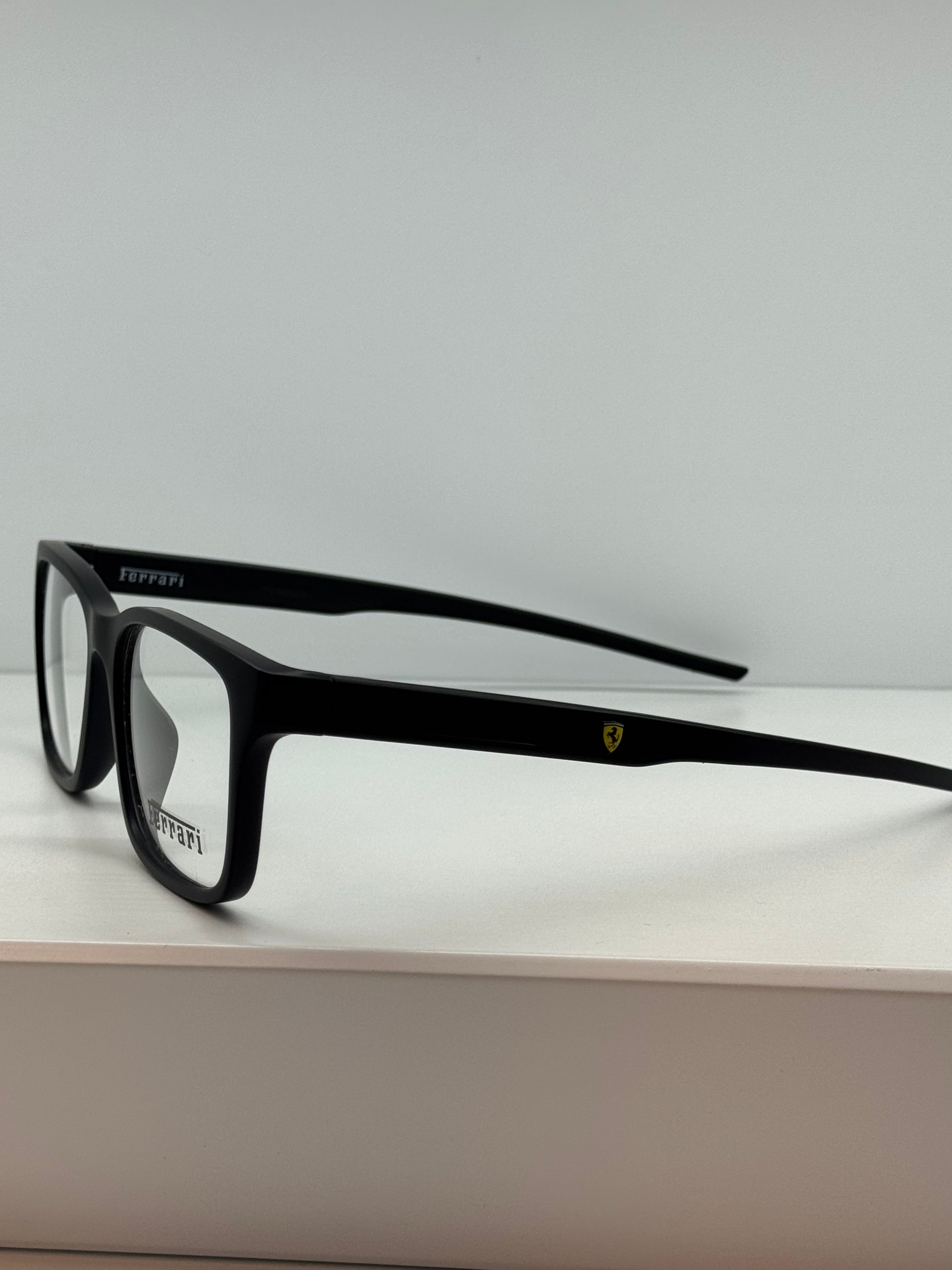 El aro Ferrari modelo 504 en color negro refleja la esencia deportiva y sofisticada de la marca. Su estructura de pasta combina un diseño moderno con un carácter masculino, ideal para quienes buscan proyectar elegancia con un toque de velocidad y estilo.